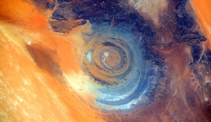 Структура Ришат, или Глаз Сахары, как еще называют это место, представляет из себя геологическое образование с циркулярным рельефом в мавританской части пустыни Сахара рядом с поселением Уадан. Окруженный тысячами квадратных километров совершенно безжизненной и бесформенной пустыни этот участок рельефа в виде почти идеальных концентрических окружностей диаметром 40-50 километров заметен даже из космоса. Долгое время считалось, что своим возникновением этот удивительный природный объект обязан упавшему сотни лет назад на поверхность Земли метеориту, а конспирологи были уверены, что это Атлантида. Однако после ряда исследований эту теорию пришлось признать неподтвержденной, и ей на смену пришла другая — о полностью геологическом происхождении Глаза Сахары.
