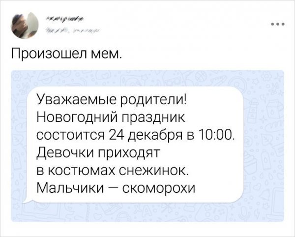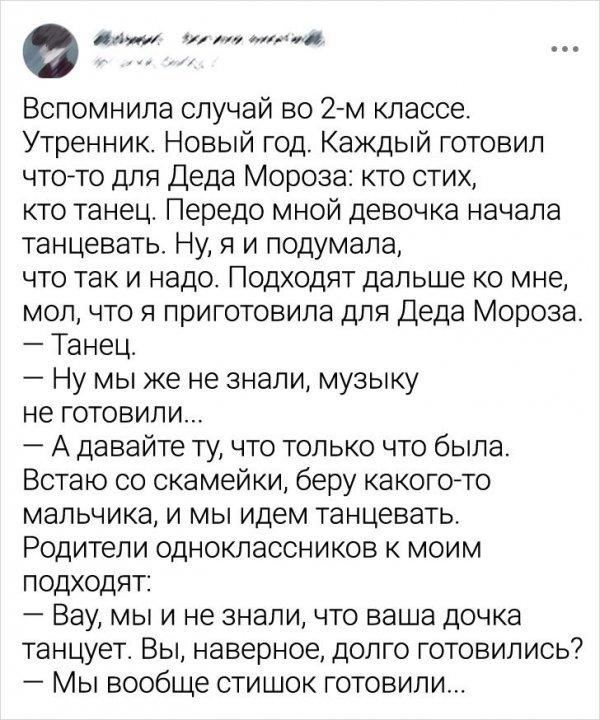 Пользователи социальных сетей рассказывают забавные истории про новогодние утренники своих ребятенков, либо же вспоминают таковские мероприятия из собственного малолетства. Вручайте же почитаем их забавные рассказы, в продолжении.