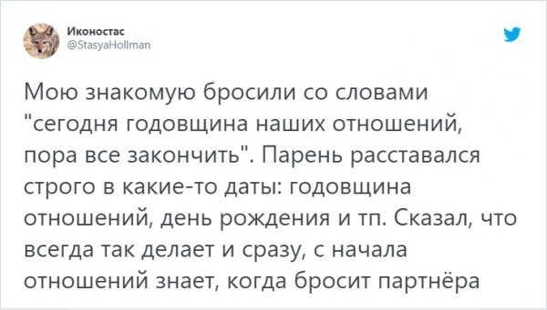 Пользователи социальных сетей делятся историями о самых необычных расставаниях со своими вторыми половинками. В одних случаях парень очутился волком-одиночкой, во других причиной разрыва стали утренние блинчики, а в третьих - пуховые варежки. Вручайте же выведаем, будто все приключилось, в продолжении.