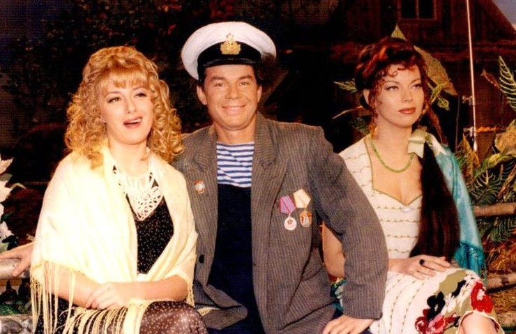 Алёна Апина, Олег Газманов и Лада Дэнс на съёмочной площадке музыкального фильма «Старые песни о главном», 1995 год