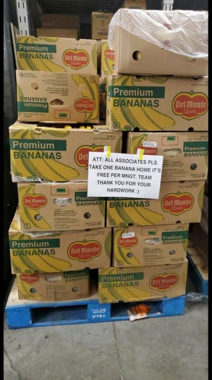 Каждый работник может взять по одному банану в благодарность за тяжёлую работу. Какая прелесть!