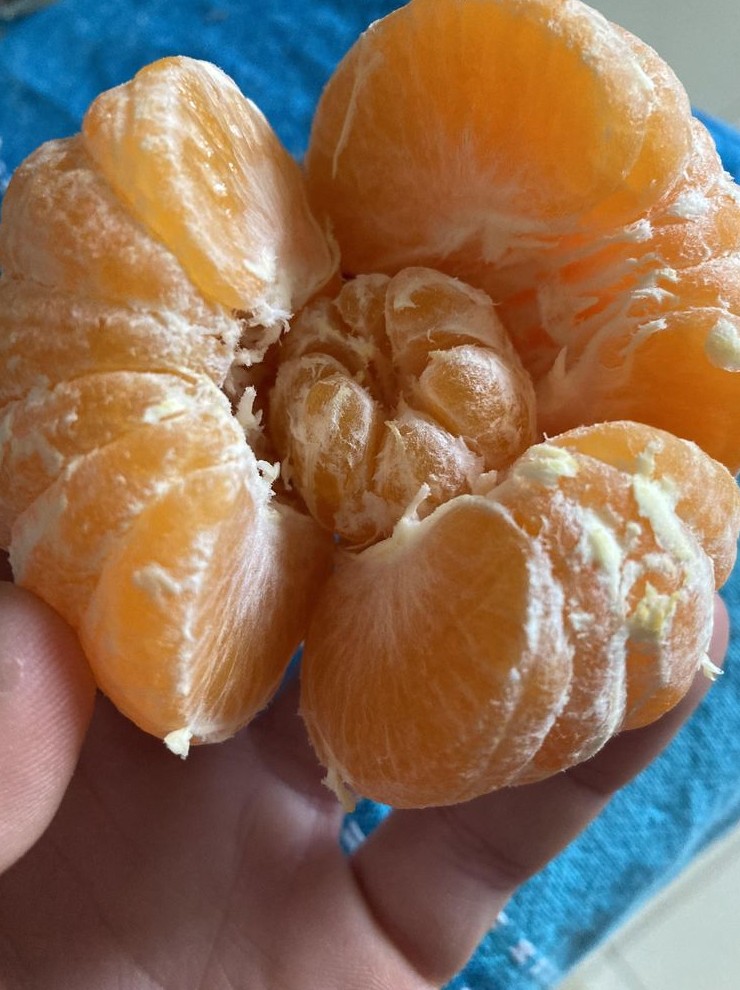 Милый малыш-клементин внутри обычного гибрида мандарина и апельсина