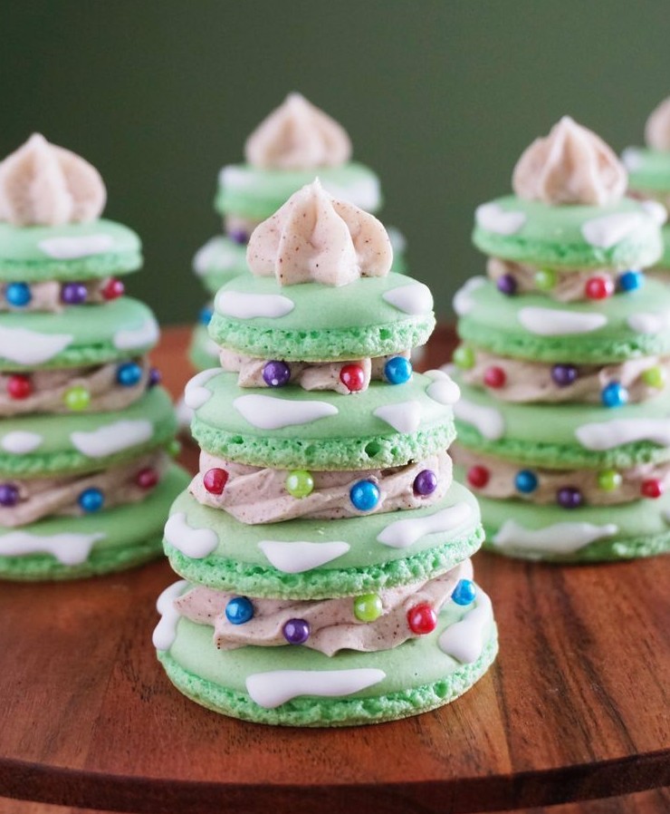 Вы можете купить готовые макаруны зелёного цвета (например, со вкусом фисташки) и повторить эту идею.