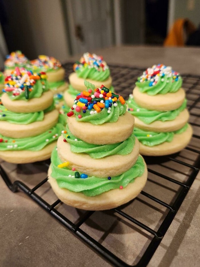 Ещё одна идея создания ёлочек из макарун, только тут вместо них используется печенье