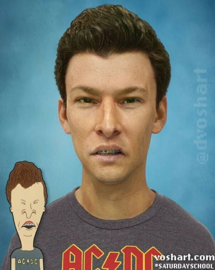 Если вы родились в начале 90-х, то наверняка помните мультсериалы, которые взрастили целое поколение. «Симпсоны», «Бивис и Баттхед», «Переменка», «Дарья» и многие другие мультики того времени были для нас целым миром, пока мы росли. Именно поэтому, став взрослыми, мы всё ещё с удовольствием вспоминаем персонажей этих мультфильмов, предаваясь приятной ностальгии. Художник Дэниел Вошарт тоже о них не забыл, мало того, он создал серию работ, посвящённую превращению мультгероев в людей, чтобы показать, как они выглядели бы, живя среди нас.