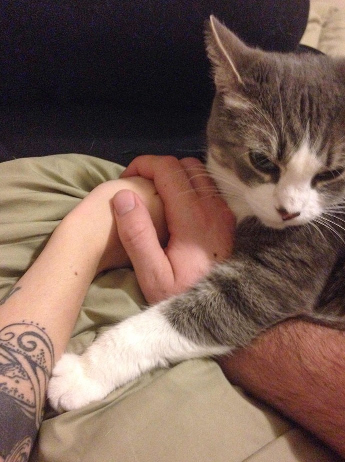 4-дневный ребенок + ревнивый кот = милейшие объятия