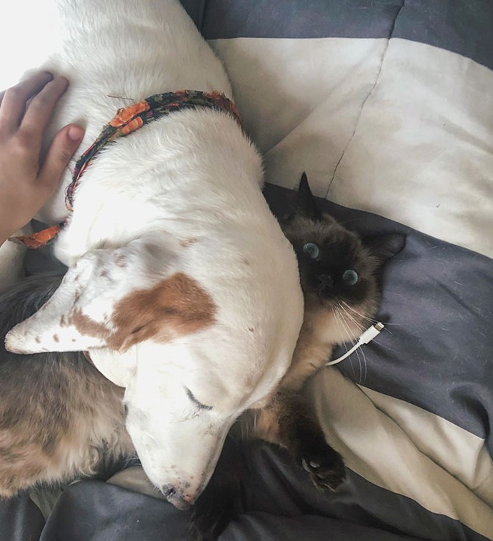 «Моя собака приревновала, увидев, как я обнималась со своей кошкой. Подошла, оттолкнула её от меня, а потом просто легла сверху»