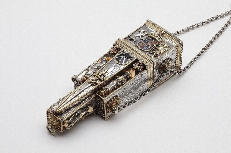 Изготовленный в Лондоне футляр для хирургических инструментов начала XVI века с позолотой из серебра. Он был создан для подвешивания на ремне
