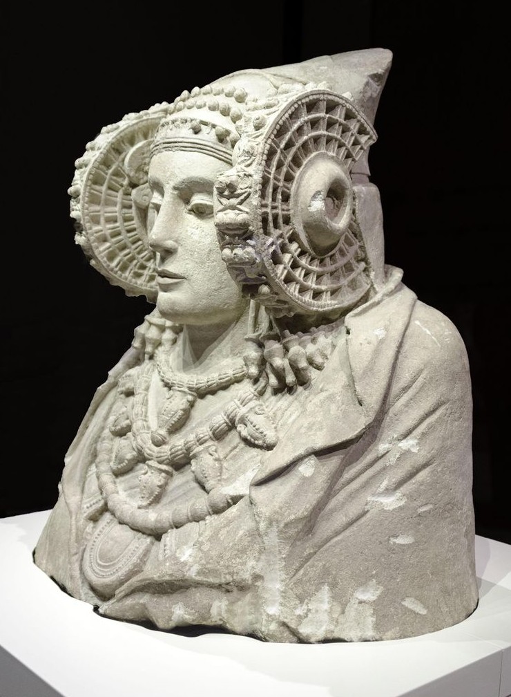 Дама из Эльче, когда-то полихромный каменный бюст, случайно обнаруженный в 1897 году в Алькудии. Считается частью иберийской скульптуры 4 века до нашей эры