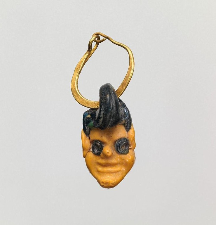 Золотая серьга со стеклянной подвеской в виде головы 3–1 вв. до н.э.