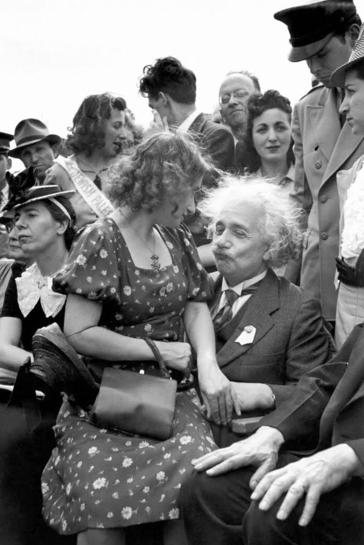 Альберт Эйнштейн с девушкой на коленях на открытии Всемирной ярмарки 1939 года в Нью-Йорке