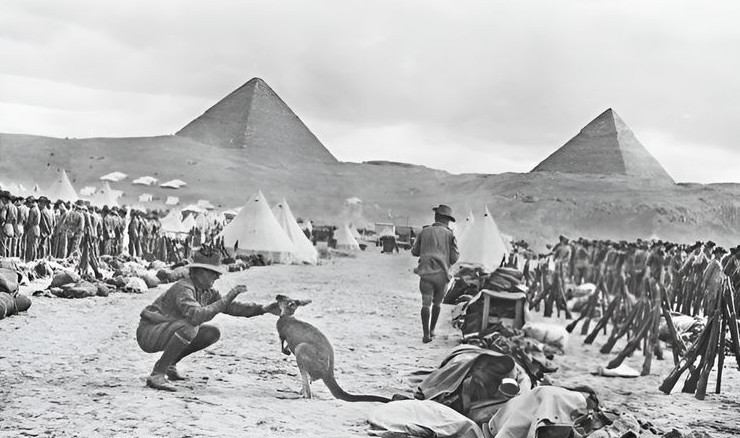 Австралийские войска возле пирамид в Египте, 1914 год