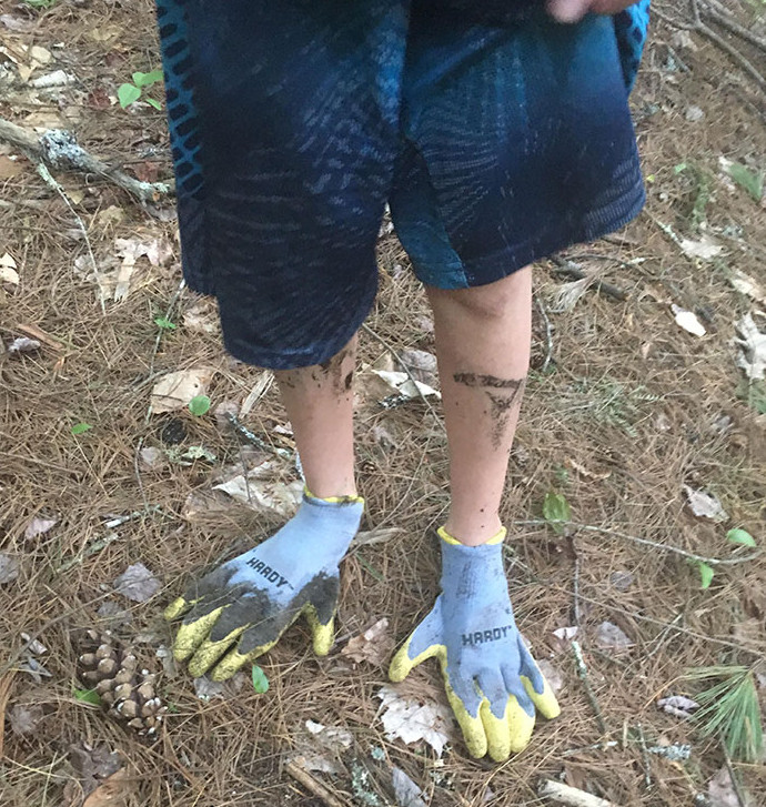 «Мы с младшим братом гуляли по грязи у нашего ручья, и он решил снять обувь, но когда я порезал ногу, он испугался, поэтому надел перчатки на ноги»