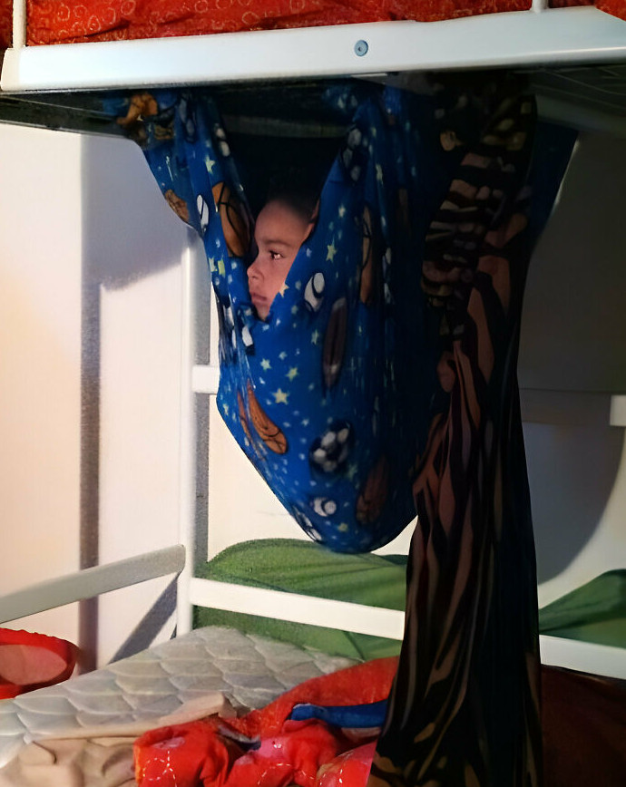Этот ребёнок сделал гамак и вот так смотрит телевизор