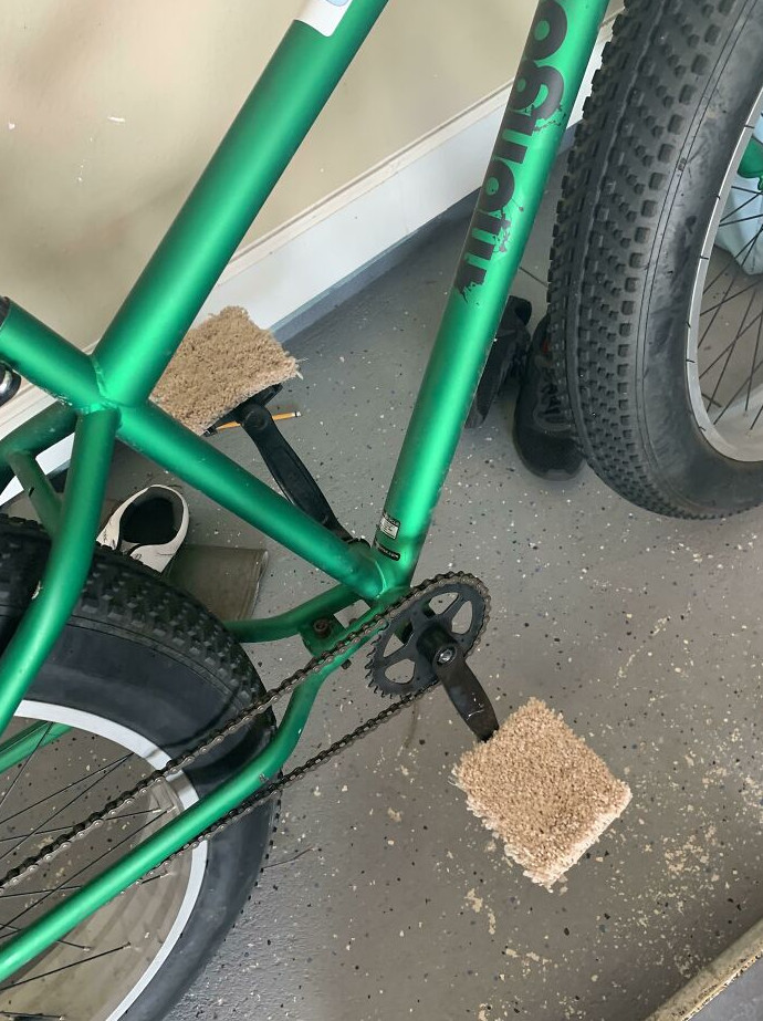 «Мой 12-летний сын модифицировал свой велосипед для езды босиком при помощи ковра»