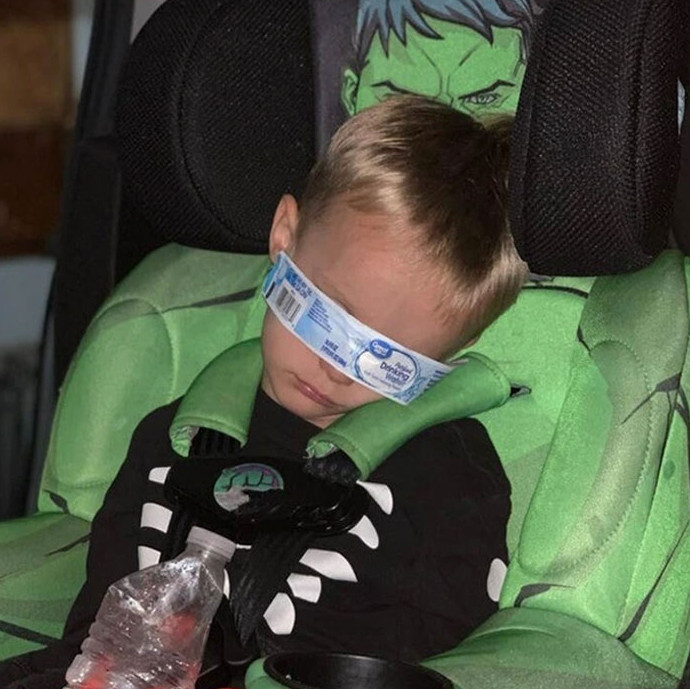 «Мой 4-летний сын снял этикетку со своей бутылки с водой, положил ее на глаза и заснул вот так»