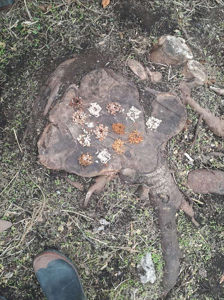 «Отверстия, которые я просверлил в этом пне, разного цвета»