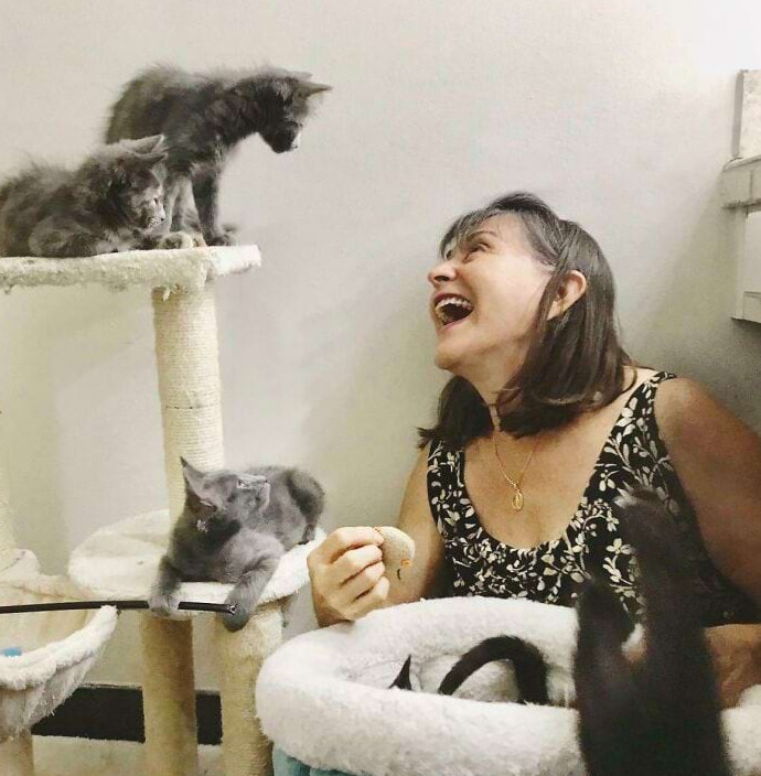 «У моих родителей были тяжелые времена, поэтому я пригласила их поиграть с моими пятью котятами. Это моя новая любимая фотография моей мамы»