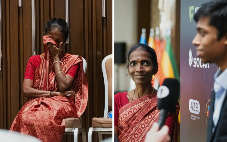 Мать Рамешбабу Прагнанандхи волнуется за сына, а затем с гордостью смотрит за него, когда он становится вторым индийцем, вышедшим в полуфинал чемпионата мира по шахматам