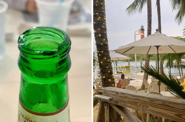 «Сегодня вечером мне подали это пиво в местном ресторане. Я заметил, что на нем есть сколы, только когда почувствовал стекло во рту»