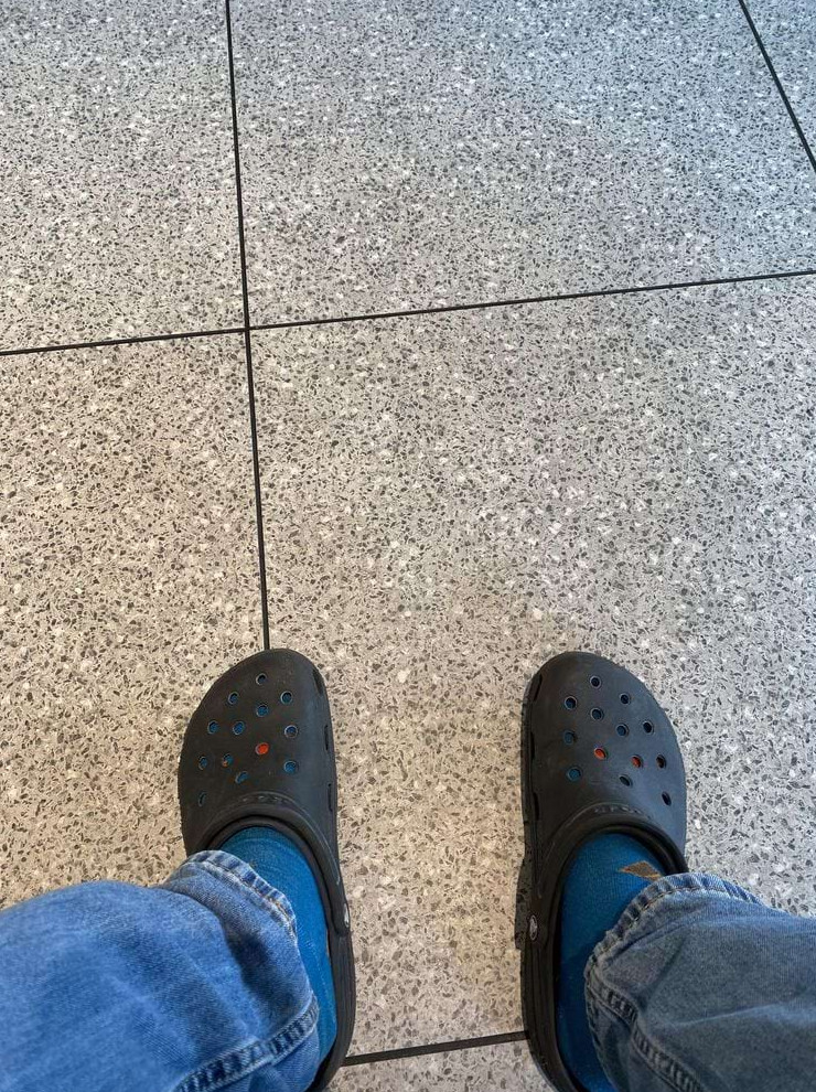 «Моим первым занятием в отпуске будет покупка обуви. Я не могу позволить моим бабушке и дедушке видеть меня в кроксах. Это, вероятно, навсегда испортит мою репутацию среди них», — написал автор фото 🐊
