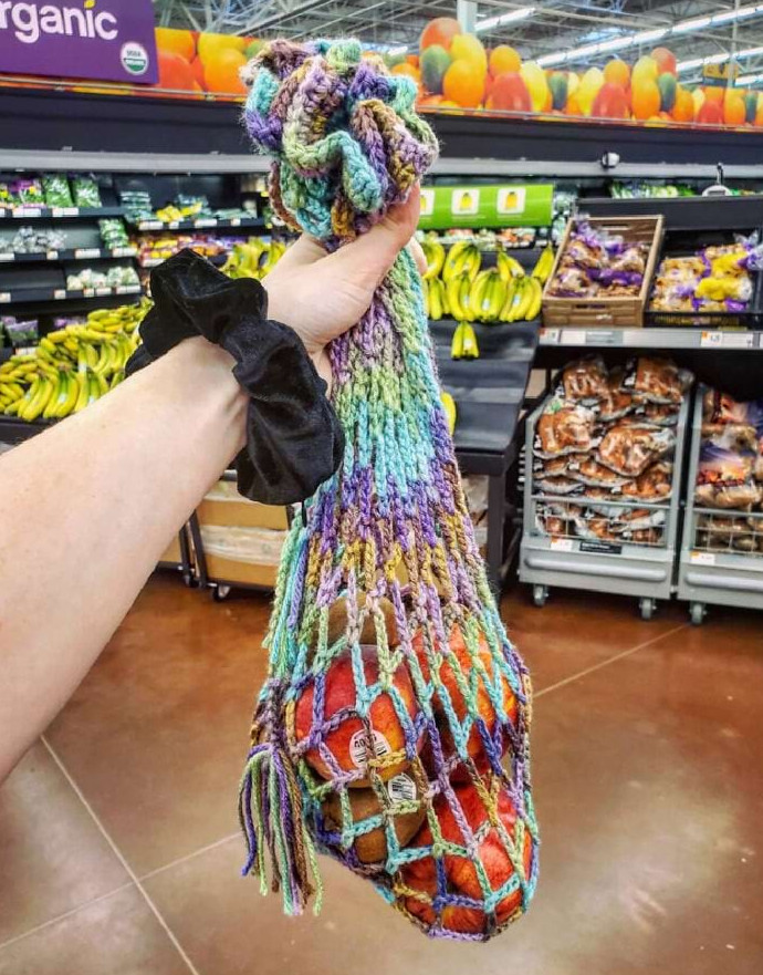 «Мне очень понравилось складывать продукты в этот связанный крючком мешок на шнурке вместо пластикового. Надеюсь, они станут более популярными»