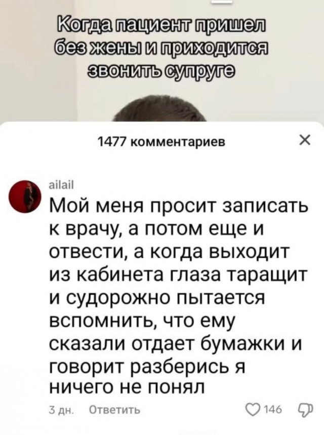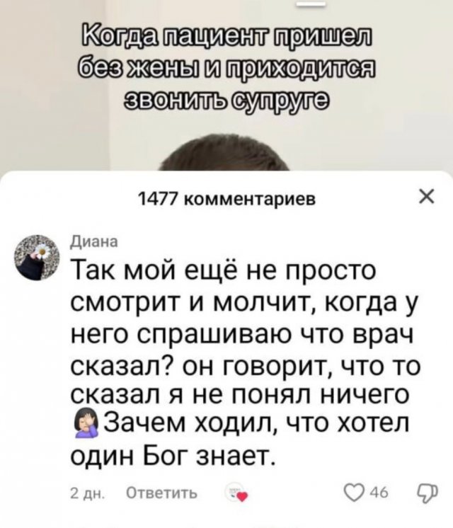 Женщины в социальных сетях рассказывают о том, будто им доводится водить своих мужиков к докторам, тк сами они свериться не в состоянии. Вручайте же почитаем эти коротенькие истории и выведаем все детали, в продолжении.