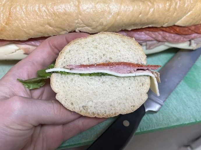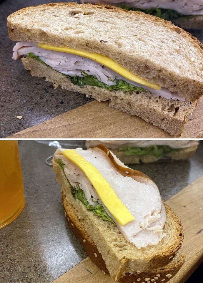 «Моя девушка заказала сэндвич с индейкой и сыром. Сняв верхнюю часть, я увидел, что сыра почти нет»