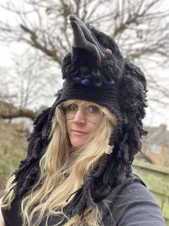 «Я связала крючком шапку в виде ворона. Мне очень хочется попробовать какаду🤣»