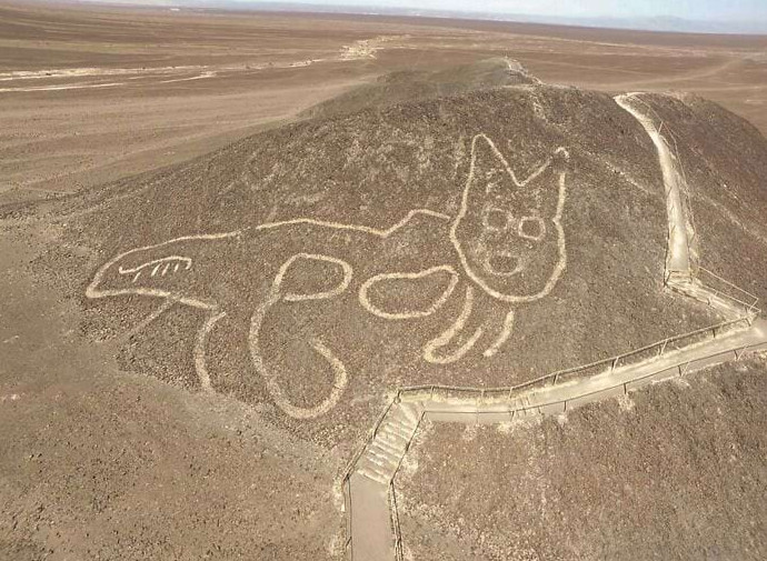 2000-летний гигантский геоглиф в виде кошки был обнаружен среди знаменитых линий Наска в Перу, объекта Всемирного наследия ЮНЕСКО