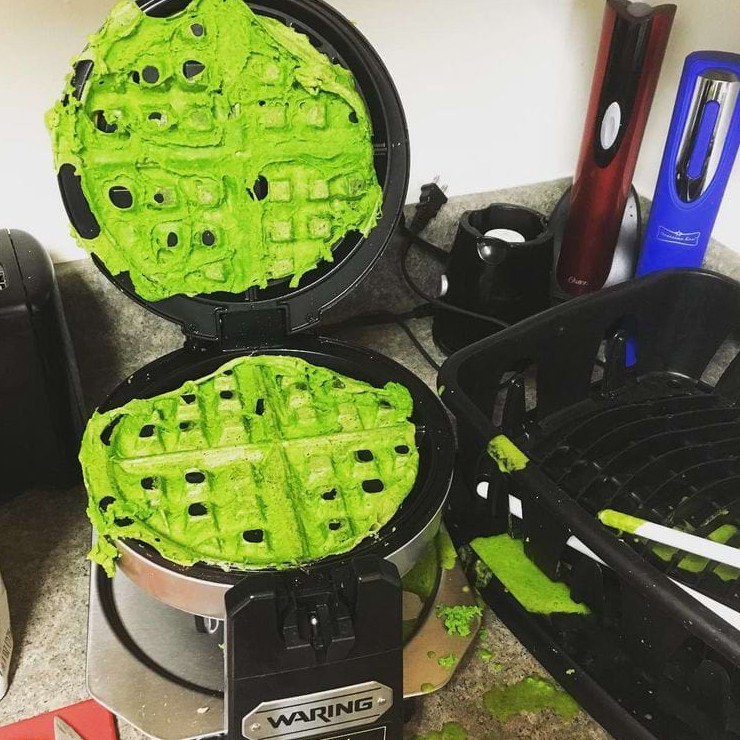 «Нуууу, я попыталась приготовить вафли, и тесто буквально вылетело на стену моей кухни 😂😂 »