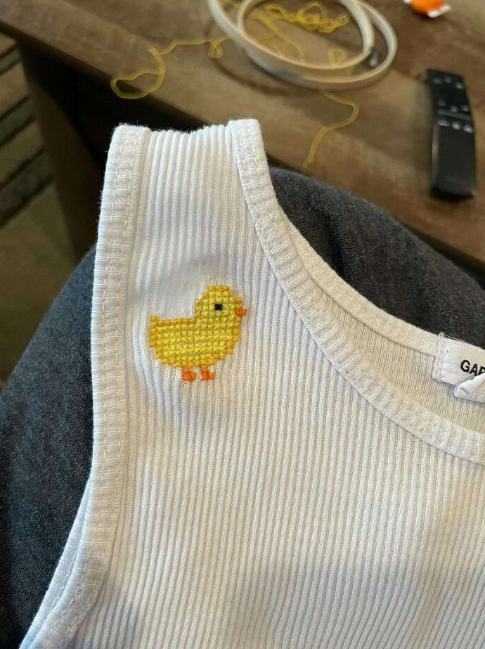 «Я замаскировала винное пятно на своем любимом платье с помощью вышитого крестиком цветка»