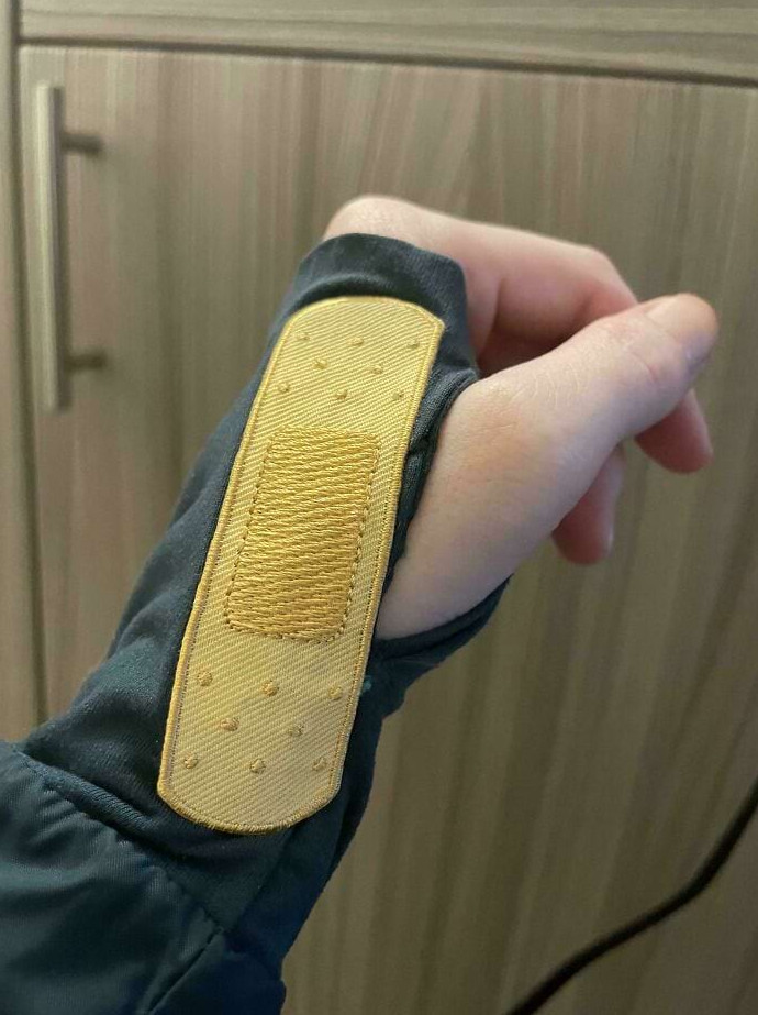 «У нас резко похолодало, поэтому мне пришлось залатать дыру в рукаве любимой зимней куртки»