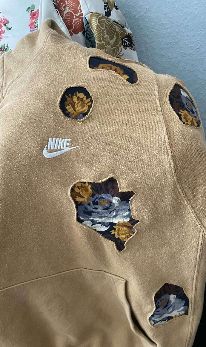 «Очень довольна тем, как это получилось — цветок одуванчика над небольшими дырочками на кофте»