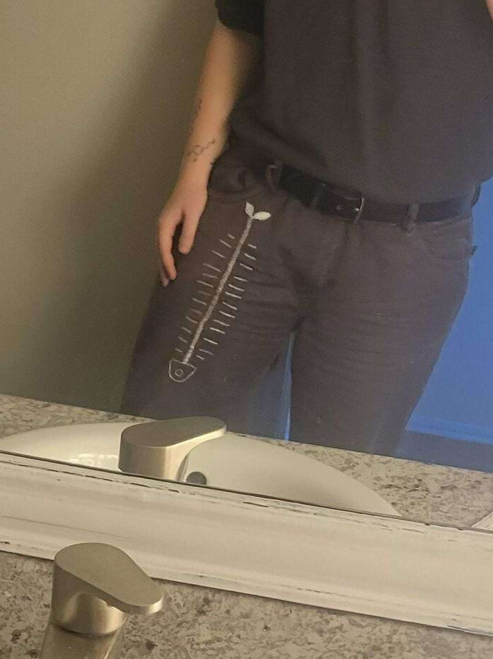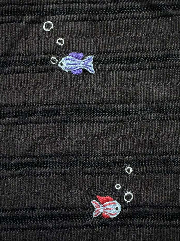«На футболке были небольшие дырочки и я закрыла их вышивкой в виде рыбок -> лучше, чем новая 🐟»