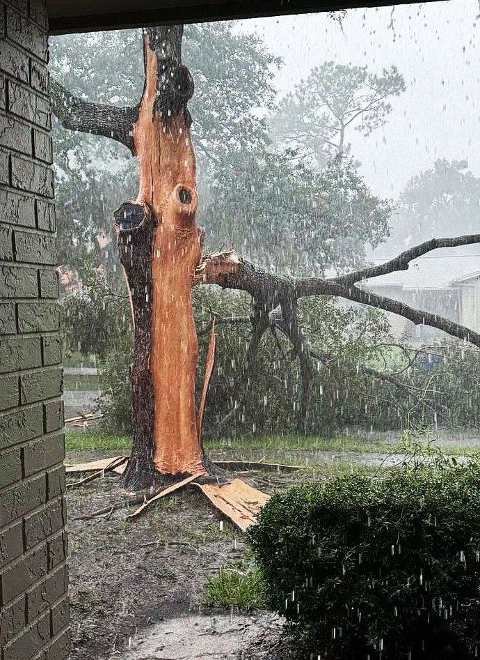 Прямой удар молнии во время сильной грозы в Вальрико, Флорида