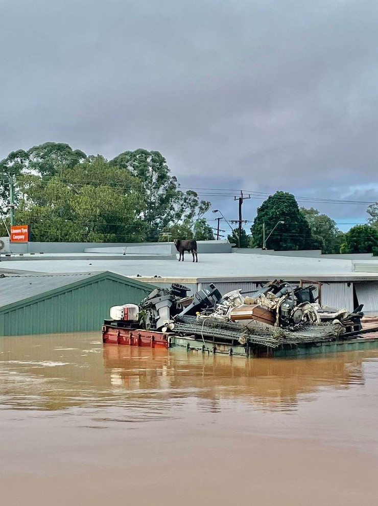 Корова на крыше австралийского города Лисмор, пострадавшего от наводнения