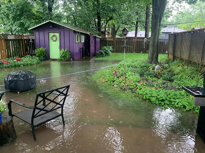 «Задний двор моих родителей прямо сейчас, после менее чем 20 минут дождя. Сегодня утром было сухо»
