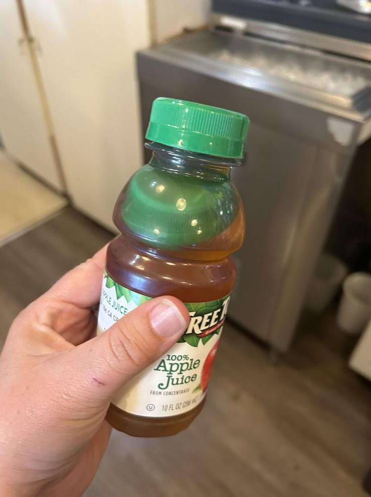 Эта (неоткрытая) бутылка яблочного сока продавалась с дополнительной крышкой внутри