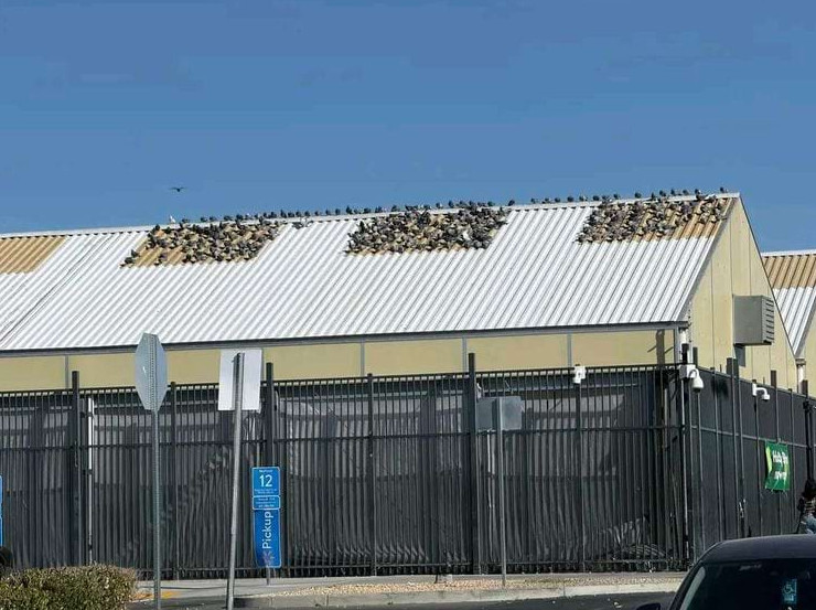 Крыша окрашена в два цвета, и голуби собираются только на тех частях, что окрашены в рыжевато-коричневый тон