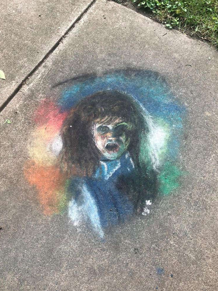 «Во время прогулки нашел это произведение искусства, нарисованное мелом на тротуаре»