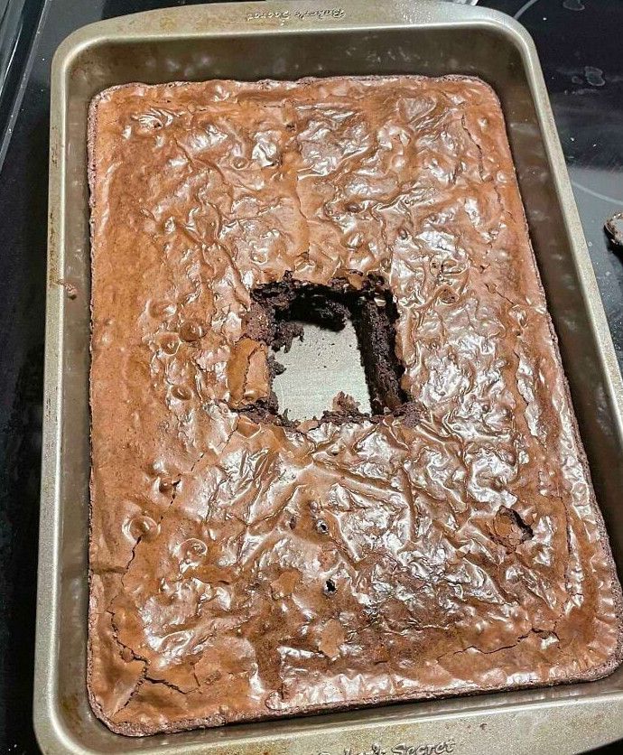 Возможно, жена делает одолжение, оставляя хрустящие боковые части своему мужу. В комментариях большинство согласилось с тем, что если это она приготовила этот брауни, то она может делать с ним всё, что хочет 🍰