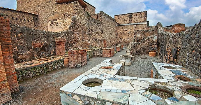 В Древнем Риме были рестораны быстрого питания, называвшиеся «термополии», где люди покупали горячую еду на ходу, что очень похоже на современную еду на вынос