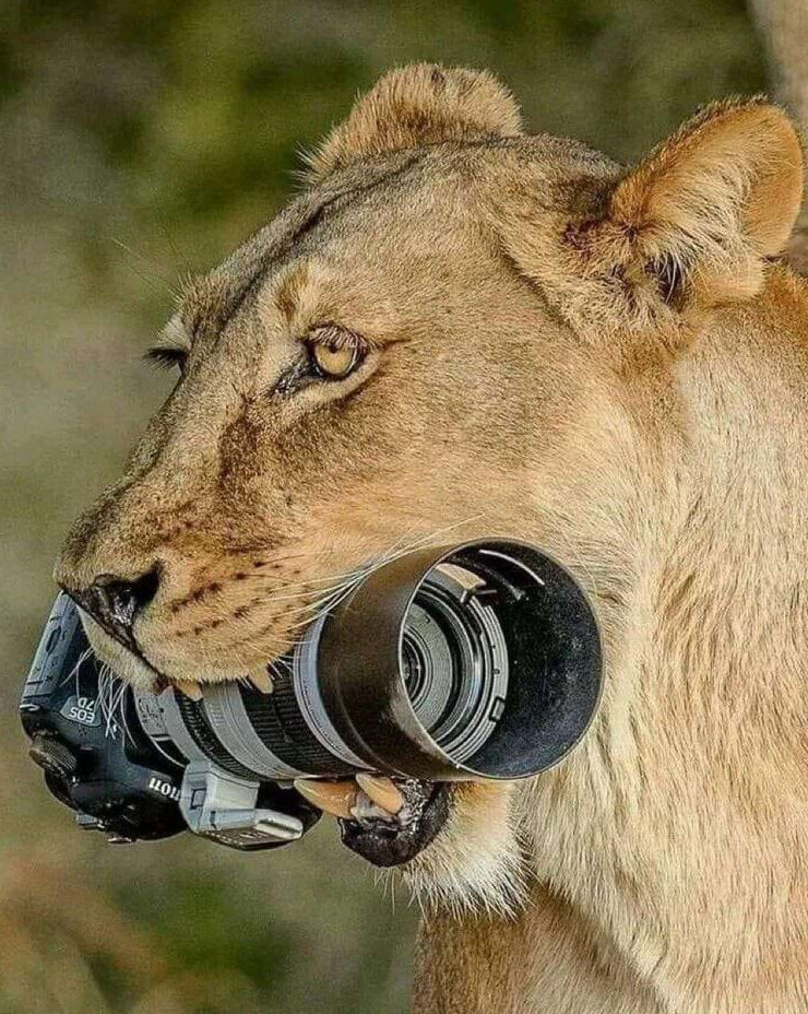 Потеря фотоаппарата с объективом обойдется фотографу очень дорого. Даже если техника была застрахована, то, думаем, вряд ли страховка покрывает атаки льва.
