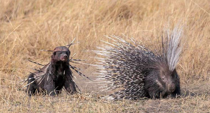 Хотелось бы сказать, что это был неудачный день для медоеда, но в тот день задом повернулся не только дикобраз к медоеду, но и судьба к дикобразу. В итоге медоед закончил то, что начал, затащив побежденного дикобраза в свое логово 😢