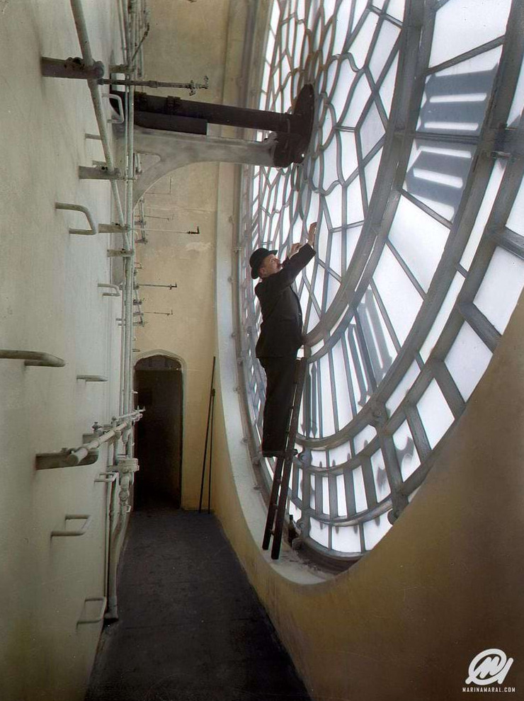 Редкий ракурс циферблата Биг-Бена, около 1920 года