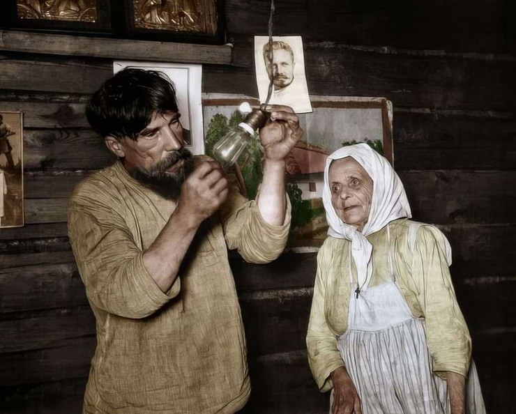 Русским крестьянам проводят электричество, 1920 год