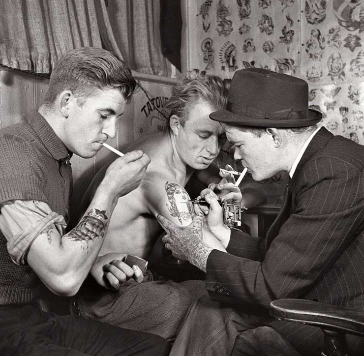 Мужчины в тату-салоне, около 1920-х годов