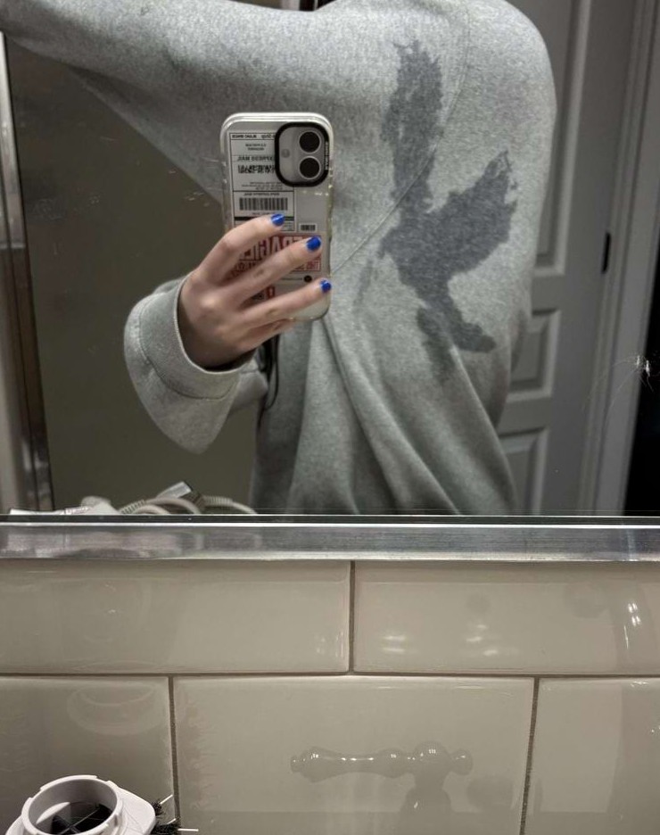 «Мои мокрые волосы оставили пятно на моей толстовке, похожее на птицу»