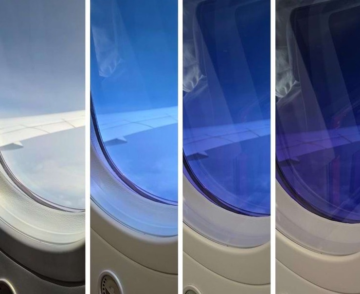 Окно самолета, которое можно затемнить кнопкой вместо шторки иллюминатора